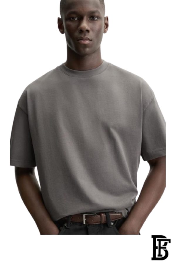 | T-shirt in soft cotton jersey with a ribbed trim around the neckline, dropped shoulders and a straight-cut hem. Loose fit for a generous but not oversized silhouette. |